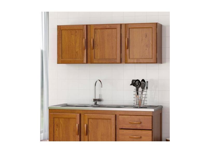 Armário Aéreo para Cozinha 120cm Madeira Maciça 3 Portas Móveis MPO