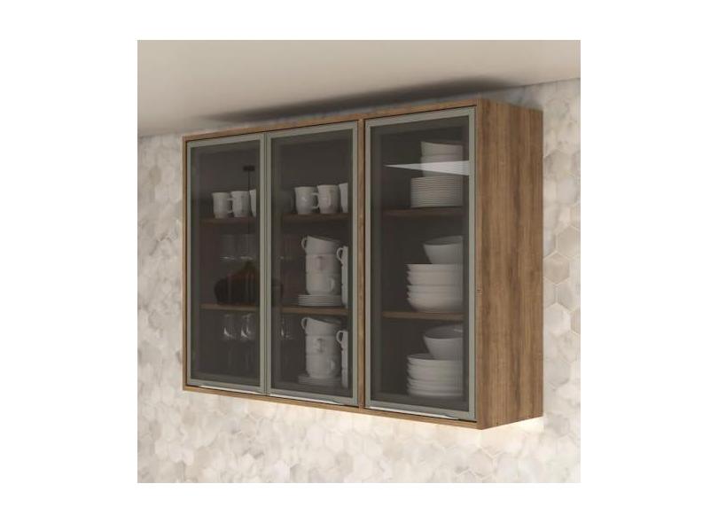O menor preço encontrado no Brasil para Armário Aéreo para Cozinha 3 Portas 120cm com Vidro Lavinia Amêndoa/niágara atualmente é R$ 779,98.