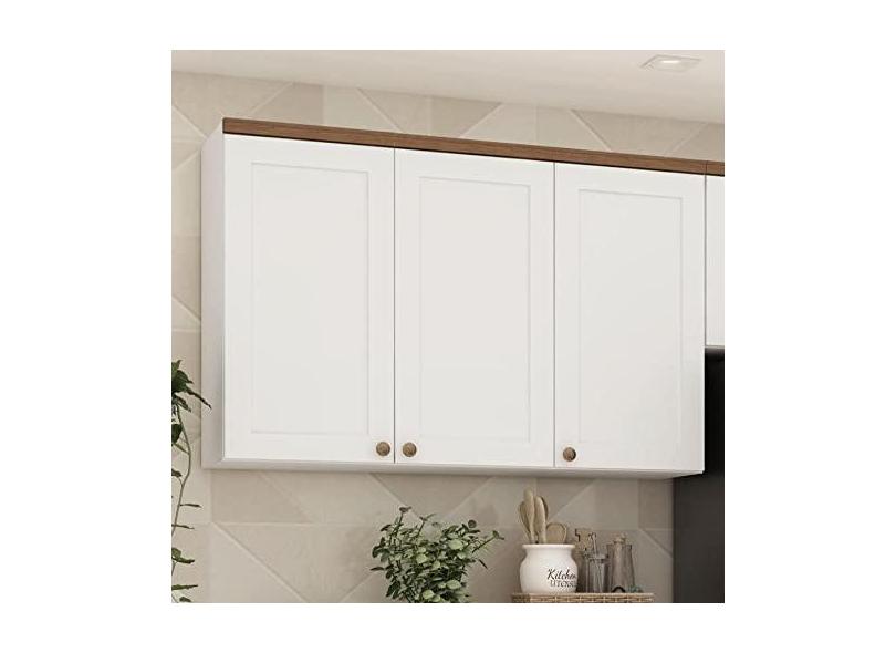 Armário Aéreo Para Cozinha 3 Portas Provençais Iluminata Genialflex Branco