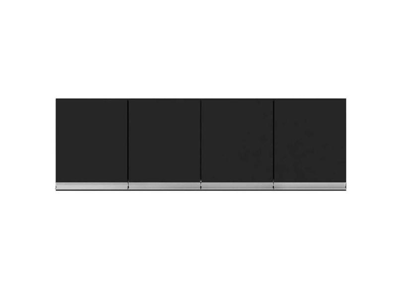 Armário Aéreo Para Cozinha Adriana 4 Portas 150 cm Preto