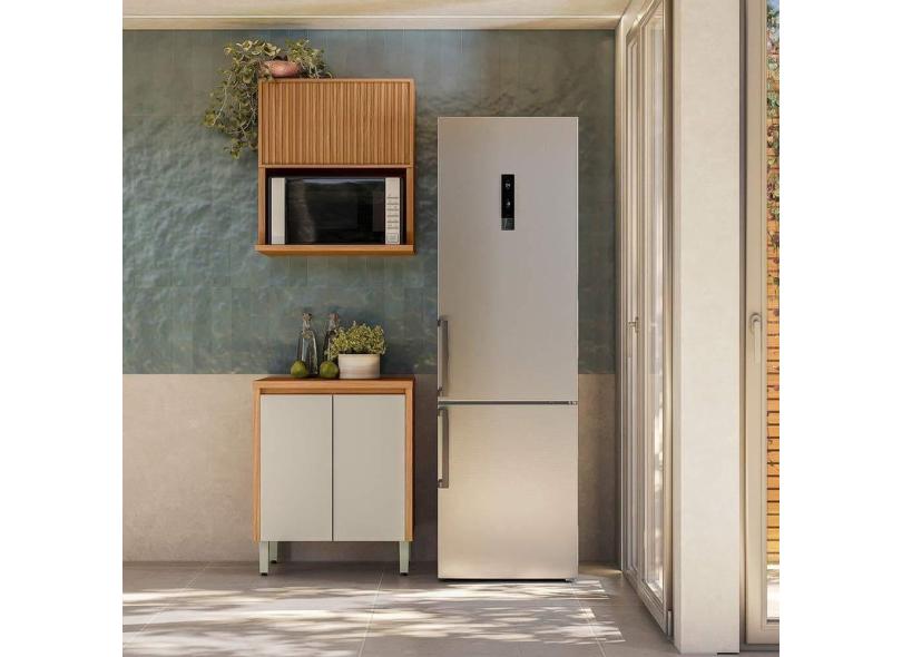 Armário Aéreo Ripado Com Balcão Para Cozinha Nature Off White Michelangelo Linea Brasil