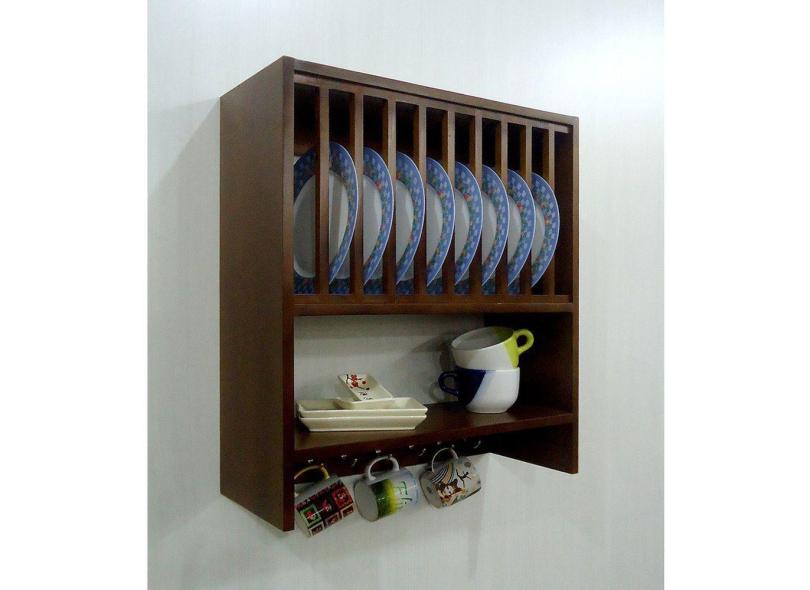 Armário Aéreo Suspenso Cozinha Porta Pratos Louças E Canecas Padrão Imbuia