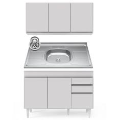Armário Aéreo Virgínia e Balcão Com Pia 120cm Michigan Branco - Lumil Móveis