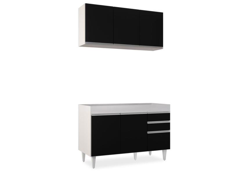 Armário Aéreo Virgínia e Balcão Para Pia 120cm Michigan Branco/Preto - Lumil Móveis
