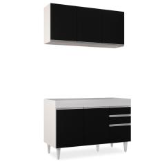 Armário Aéreo Virgínia e Balcão Para Pia 120cm Michigan Branco/Preto - Lumil Móveis