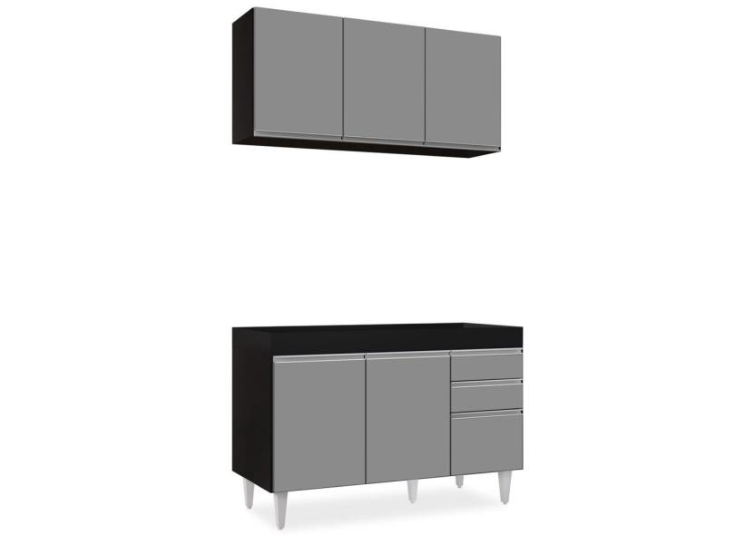 Armário Aéreo Virgínia e Balcão Para Pia 120cm Michigan Preto/Cinza - Lumil Móveis
