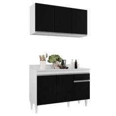 Armário Aéreo Virgínia E Balcão Para Pia Com Tampo 120cm Arizona Branco/Preto - Lumil