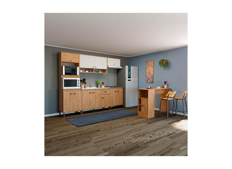 Armário Cozinha 253cm Com Bancada 6 Pçs Completa Com Puxador Concha Co