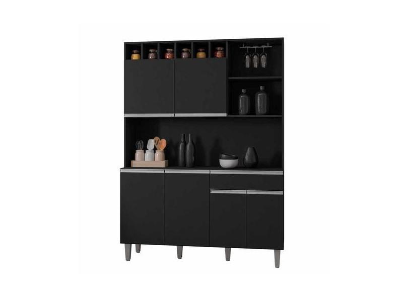 Armário Cozinha Compacta 6 Portas Alice 130cm Preto Fosco 1909 Ajl Móv