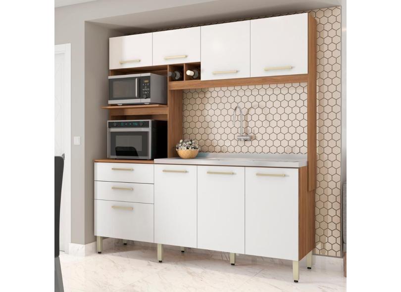 O menor preço encontrado no Brasil para Armário Cozinha Compacta 8 Portas 2 Gaveta Espaço Duplo Forno Hera Amendola Branco Amendola atualmente é R$ 660,63.