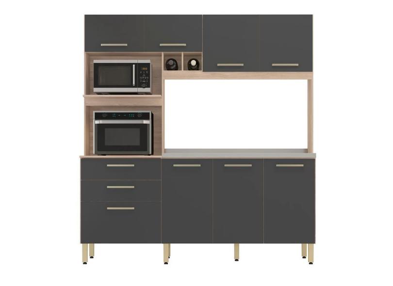 Armário Cozinha Compacta 8 Portas 2 Gaveta Espaço Duplo Forno Hera Avena Grafito Avena