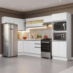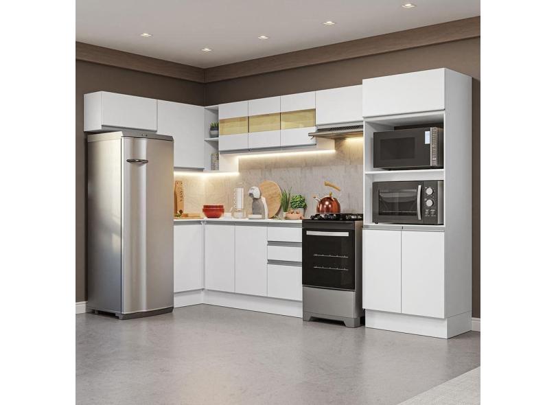 Armário Cozinha Completo Canto 100% MDF 447cm Branco