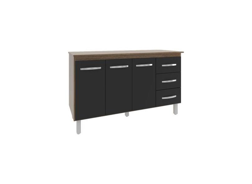 Armário Cozinha Gabinete de Pia 160 cm Estela Savana Preto e Tampo Tam