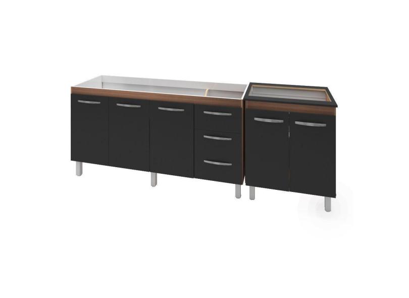 Armário Cozinha Gabinete Pia De 160 Cm Emily Com Balcão Cooktop 5 Bocas Savana Frente Preta Jade