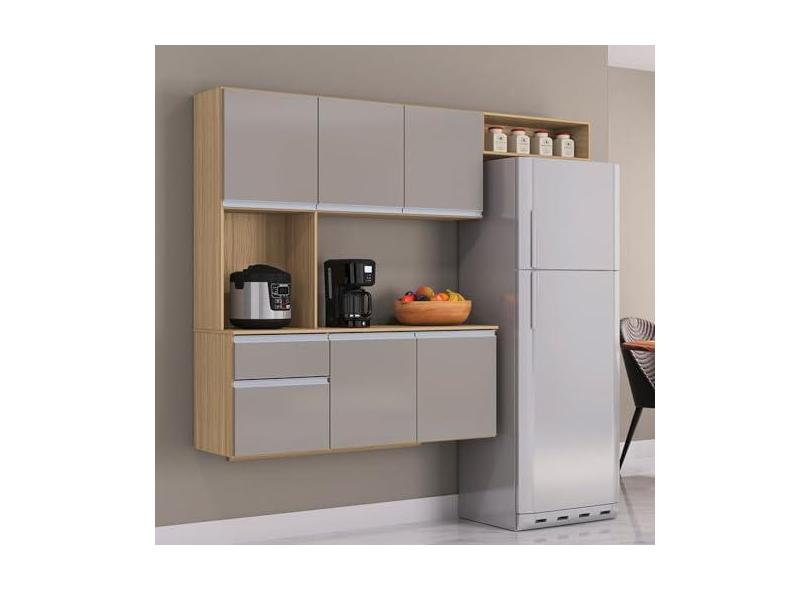 Armario Cozinha Mel 180 cm Com 6 Portas e 1 Gaveta Damasco/off White