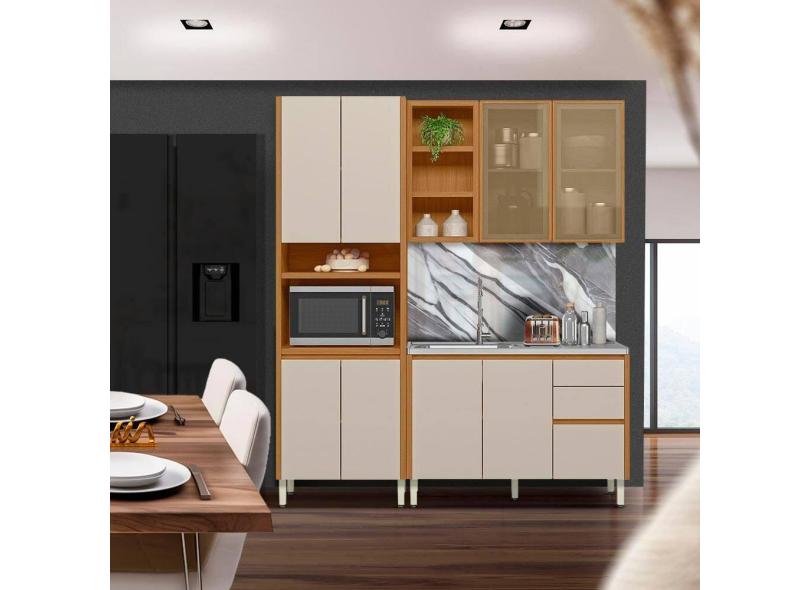 Armário Cozinha Pequena 3 Peças Nature Off White Miranda Shop JM