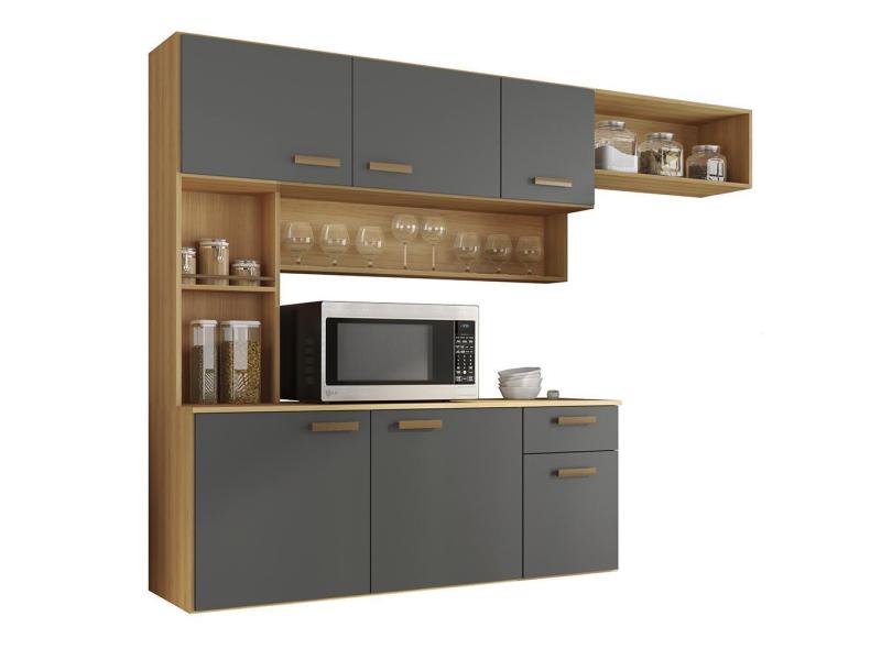 Armario Cozinha Suspensa Manu 6 Portas E 1 Gaveta Freijo Uv/Grafite Acetinado