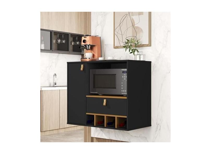 Armario Cozinha Suspenso Edipo Cor Preto / Nature Comprar - Comprar Mó