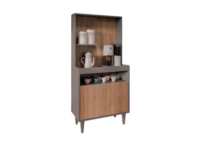 Armário de Cozinha 2 Portas Cantinho do Café 70cm Bella M24 Grafite/Freijó - Mpozenato