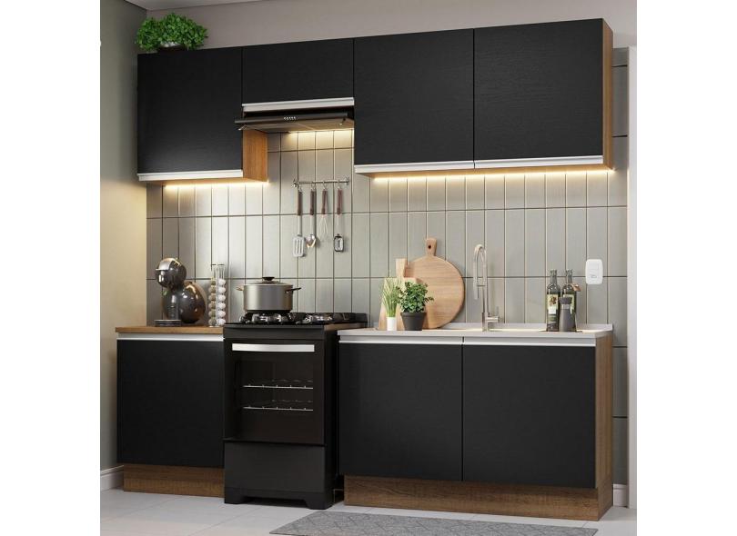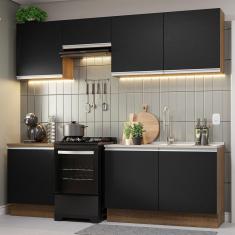 Armário De Cozinha 240Cm Rustic/Preto Glamy 09 Rustic/Preto