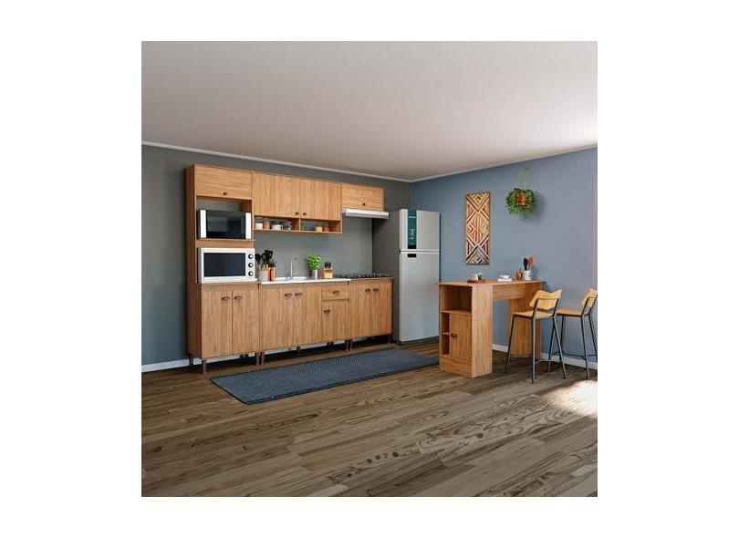 Armário De Cozinha 253cm Com Bancada 6 Peças Modulada Torino Puxador C