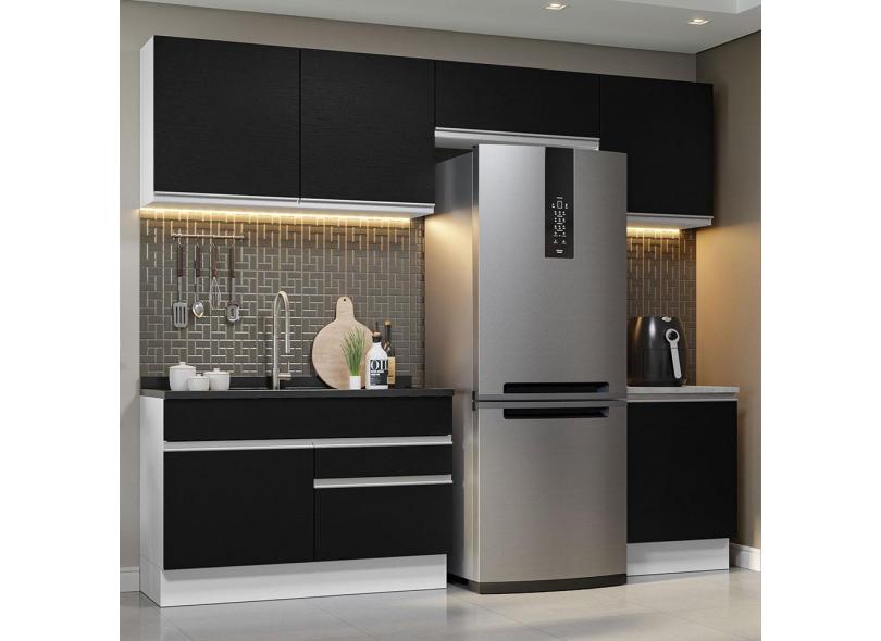 Armário De Cozinha 260Cm Branco/Preto Glamy 05 Branco/Preto