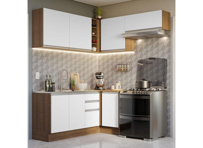 Armário De Cozinha 349Cm Glamy 07 Rustic/Branco