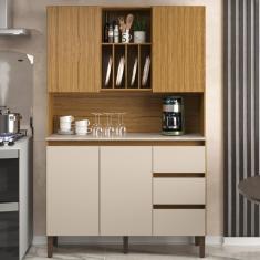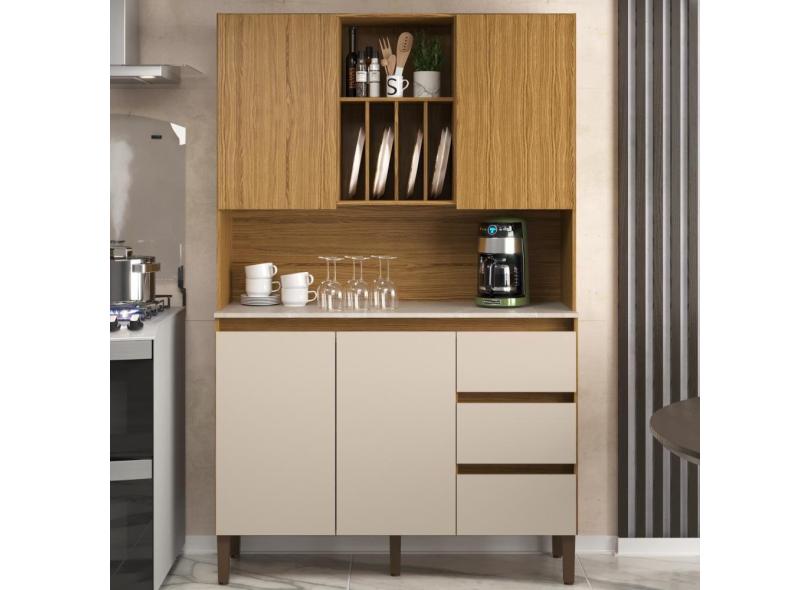 Armário De Cozinha 4 Portas 3 Gavetas Ac4430 Naturalle Cristalo Petra Decibal Naturalle petra