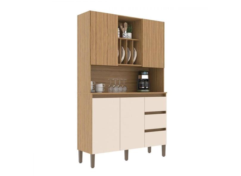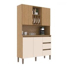Armário de Cozinha 4 Portas 3 Gavetas Naturalle/Cristalo - Decibal