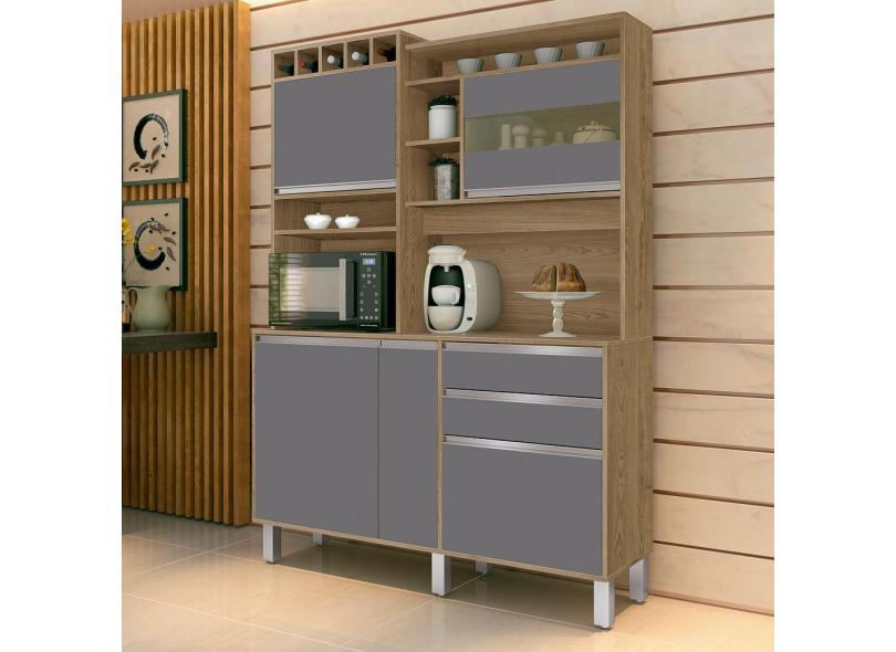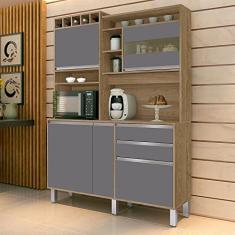 Armário De Cozinha 5 Portas Com Gaveta Smart - Freijó Com Cinza - Vitamov