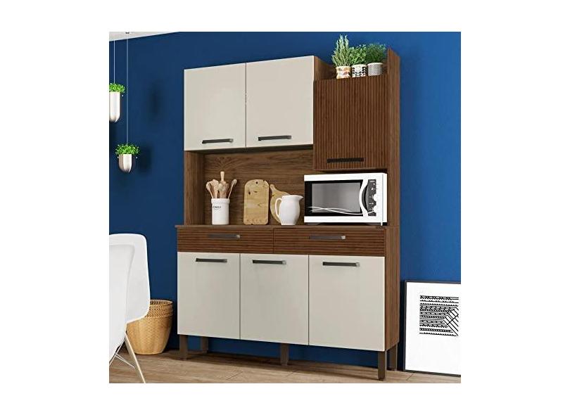 Armário de Cozinha 6 Portas 2 Gavetas Kit Modena Kits Paraná Nogueira/off White