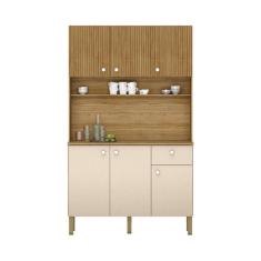 Armario De Cozinha 6 Portas E 1 Gaveta Rubi Style Kits Paraná Cor:freijo/vanilla/cp-ripado