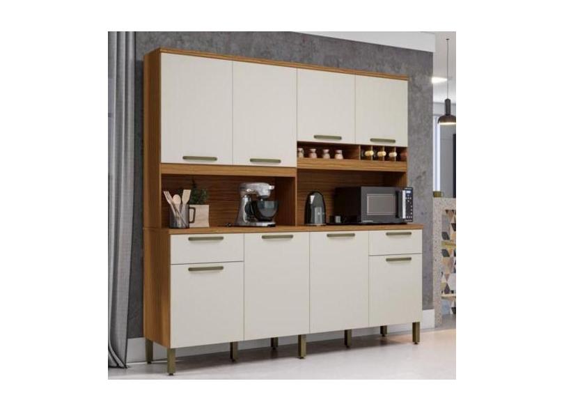 Armário De Cozinha 8 Portas 2 Gavetas Amêndoa Cabarnet Prime - Moveis