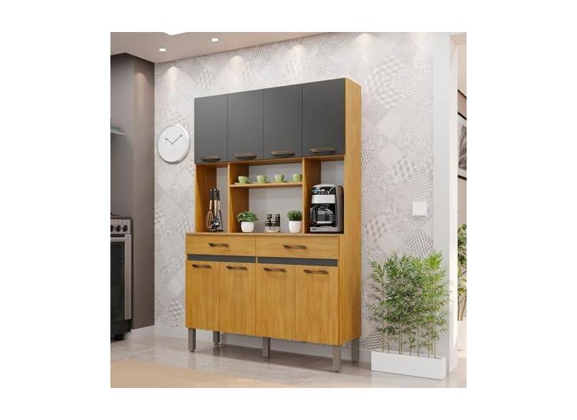 Armário de Cozinha 8 Portas 2 Gavetas New Ônix Cinamomo/Grafitte