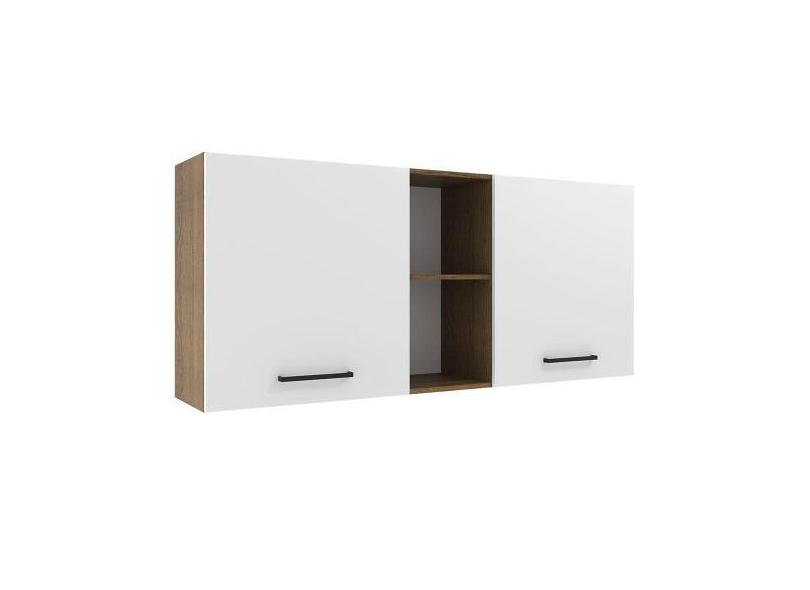 Armário de Cozinha Aéreo 150 cm 2 Portas e 2 Nichos Rustic/Branco Agat