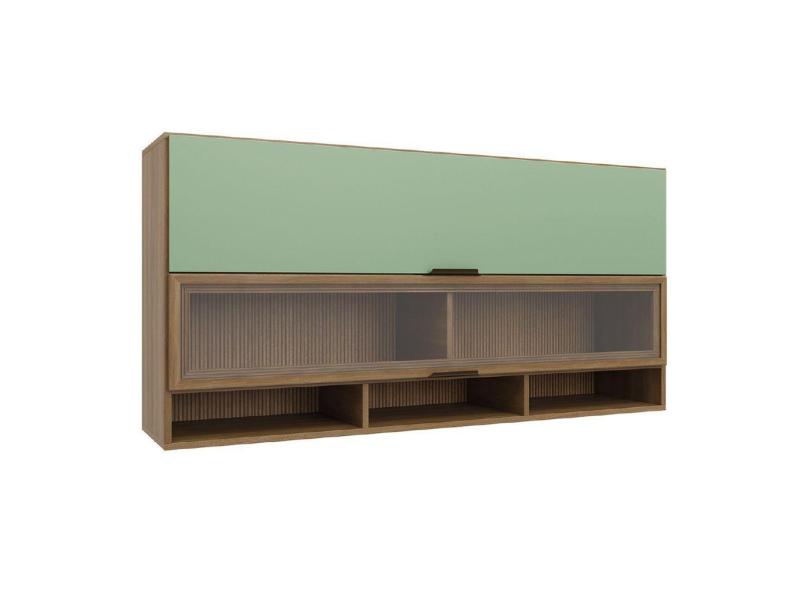 Armário De Cozinha Aéreo 2 Portas Com Vidro Módulo Suspenso Nogal/verde Batrol Nogal Verde Mar