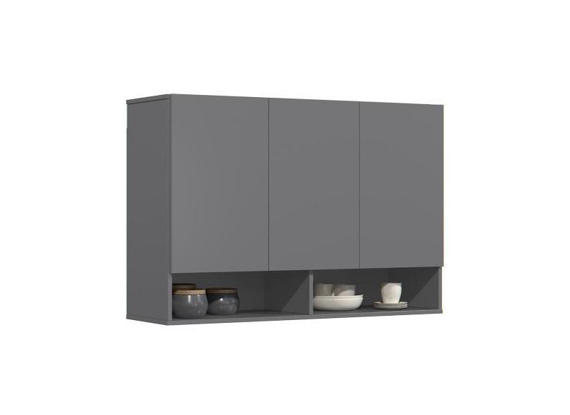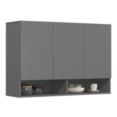 Armário De Cozinha Aéreo 3 Portas 2 Nichos 91cm Milão Cinza - Ej Móvei