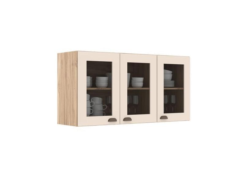 Armário de Cozinha Aéreo 3 Portas com Vidro Carvalho Oak/Cristalo - De