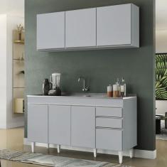 Armário de Cozinha Aéreo Argélia e Balcão Com Pia 150cm Marrocos Cinza