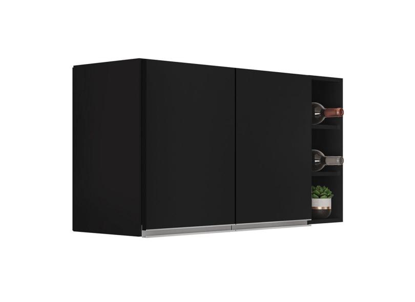 Armário De Cozinha Aéreo Califórnia 80cm E Nicho Garrafeiro 20cm Riad Preto - Lumil