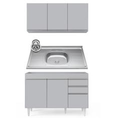 O menor preço encontrado no Brasil para Armário De Cozinha Aéreo Virgínia E Balcão Com Pia 120cm Michigan Cinza Claro - Lumil atualmente é R$ 935,26.