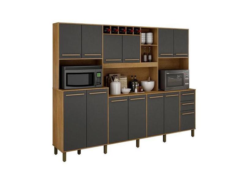 Armário De Cozinha Ágata Cinamomo Grafite - Valdemóveis - Valdemoveis