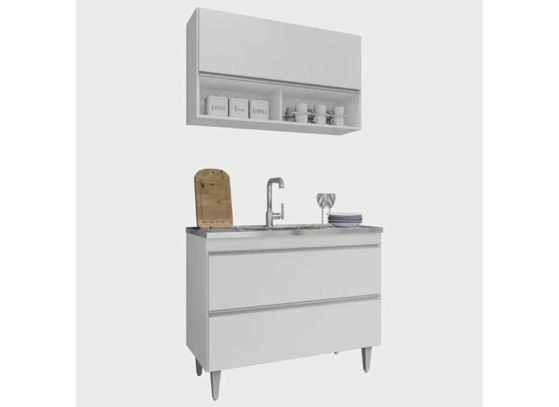 O menor preço encontrado no Brasil para Armário de Cozinha Com Nichos CP01 Com Pia 100cm M24 Branco - Mpozenato atualmente é R$ 990,90.