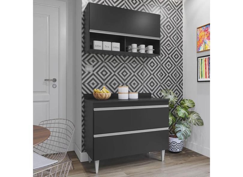 O menor preço encontrado no Brasil para Armário de Cozinha Com Nichos CP01 Com Tampo 100cm M24 Preto - Mpozenato atualmente é R$ 917,40.