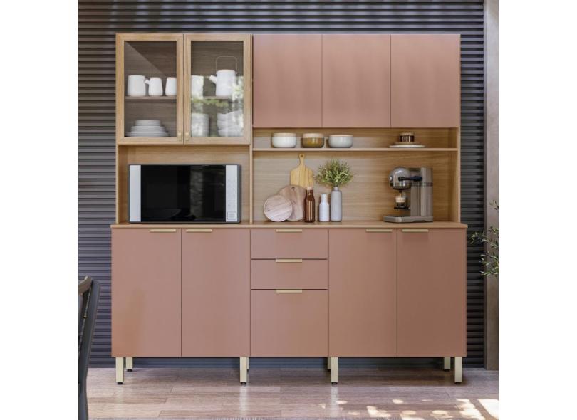 Armário De Cozinha Compacta 10 Portas 2 Gavetas Amora Amêndola Touch-marsala Prime Tx
