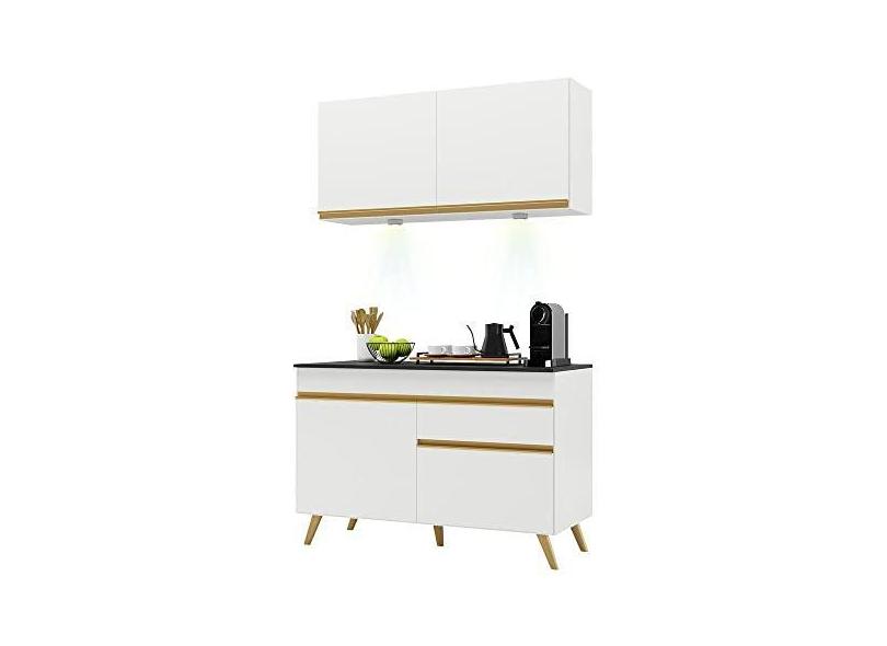 Armário de Cozinha Compacta 120cm com Leds Veneza Up Multimóveis V2012 Branco/dourado