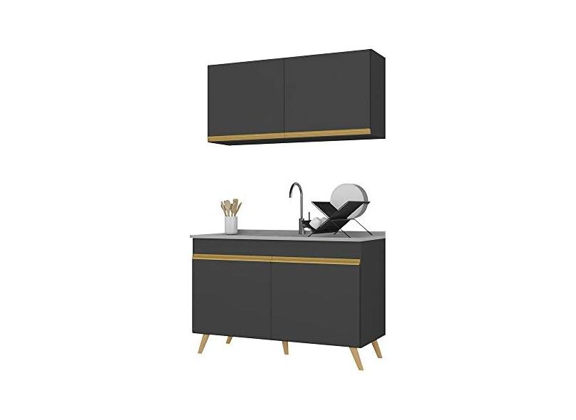 Armário de Cozinha Compacta 120cm Veneza Multimóveis V3748 Preto/dourado