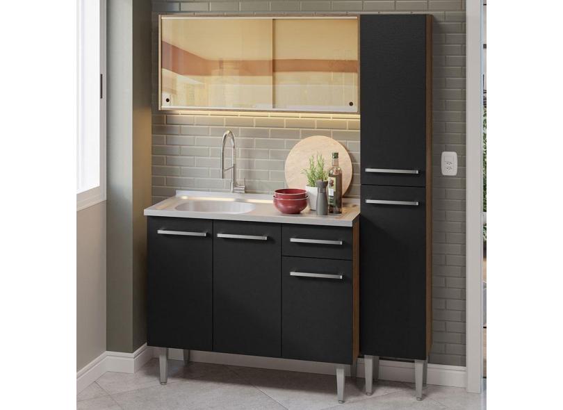 Armário De Cozinha Compacta 137cm Com Pia Rustic/preto Emilly Madesa 08 Rustic/preto