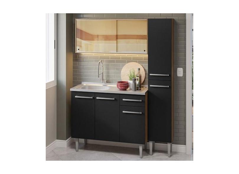O menor preço encontrado no Brasil para Armário de Cozinha Compacta 137cm com Pia Rustic/preto Emilly Madesa 08 atualmente é R$ 1.041,59.