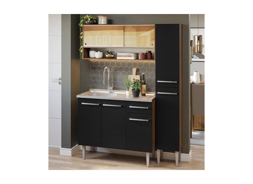 Armário de Cozinha Compacta 137cm com Pia Rustic/preto Emilly Madesa 10